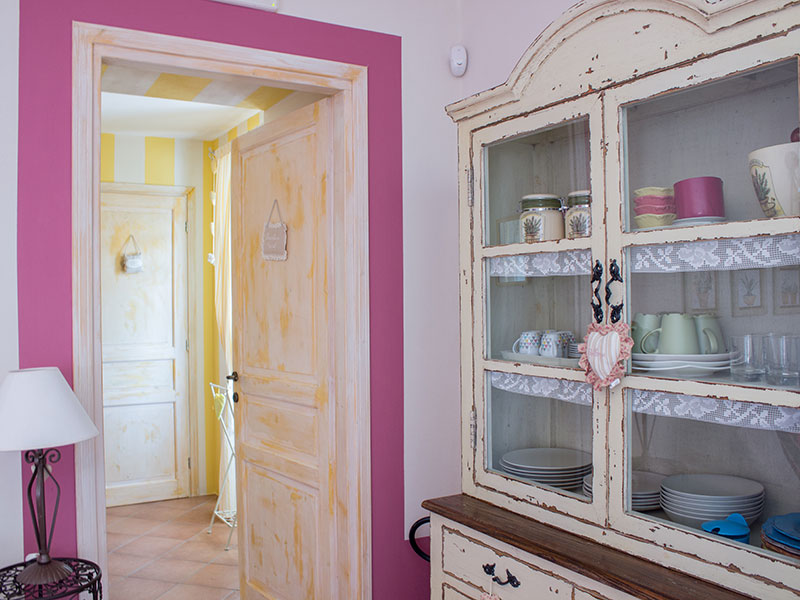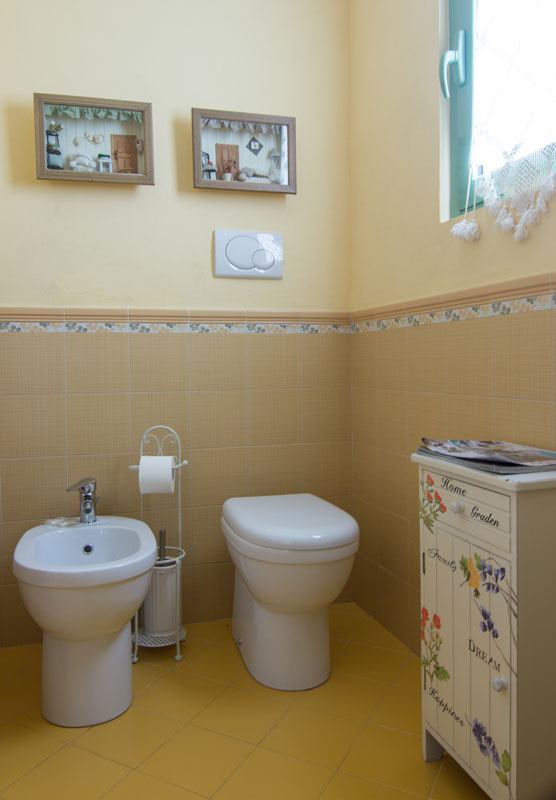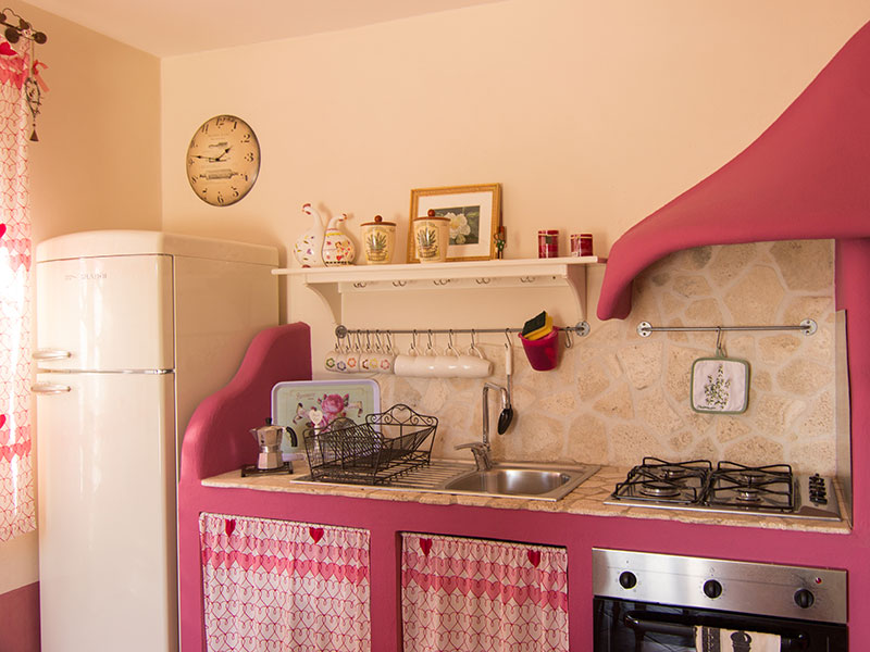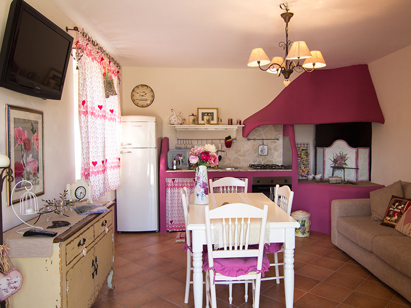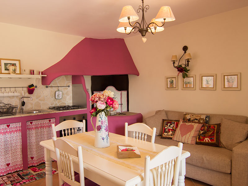 Appartamento al piano terra, composto da angolo cucina, soggiorno e divano letto matrimoniale, camera matrimoniale con letto aggiunto, 2 bagni. Spazio esterno con tavolo e sedie a disposizione degli ospiti. Può ospitare fino a cinque persone.